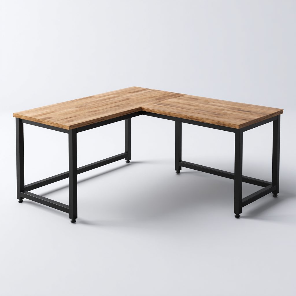 Bureau métal bois 150x150x75 cm - marron-noir - design fonctionnel pour bureau
