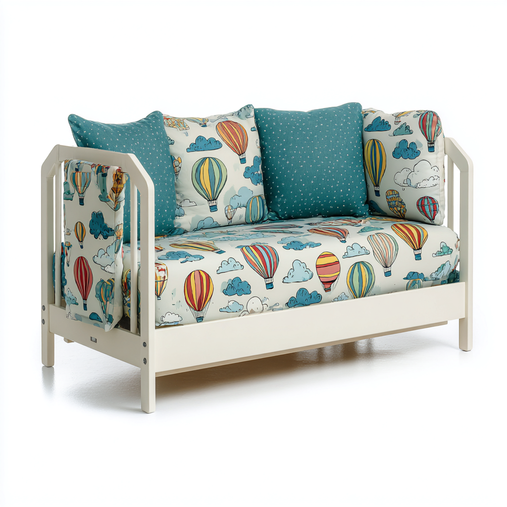 Lit enfant en bois et tissu 160x80x75 cm motif montgolfière design ludique