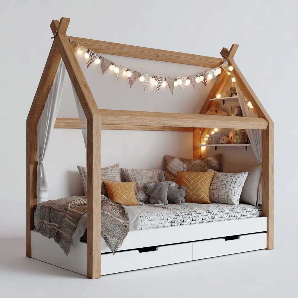 Lit enfant en bois 190x90x180 cm blanc avec rangement tiroirs design maisonnette