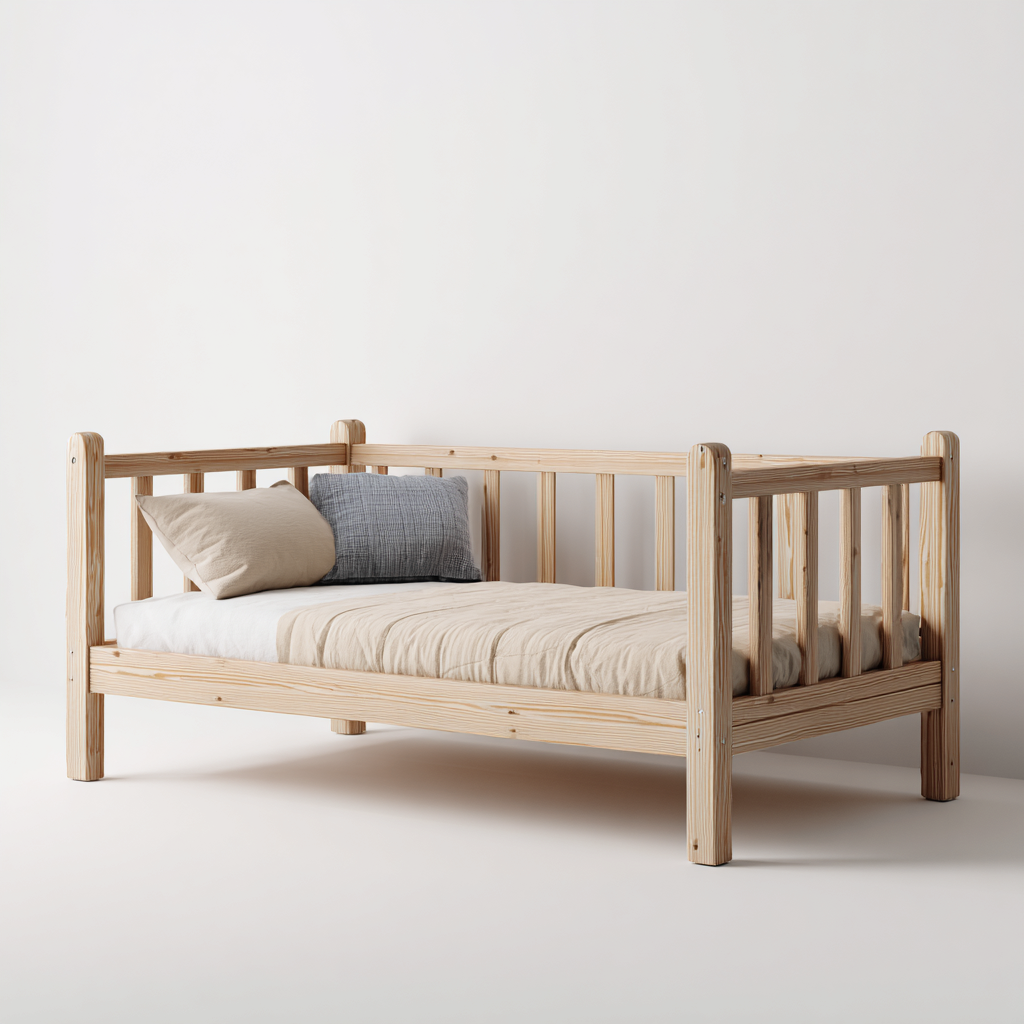 Lit enfant bois 150x75x85 cm - bois naturel - style classique adapté à la chambre