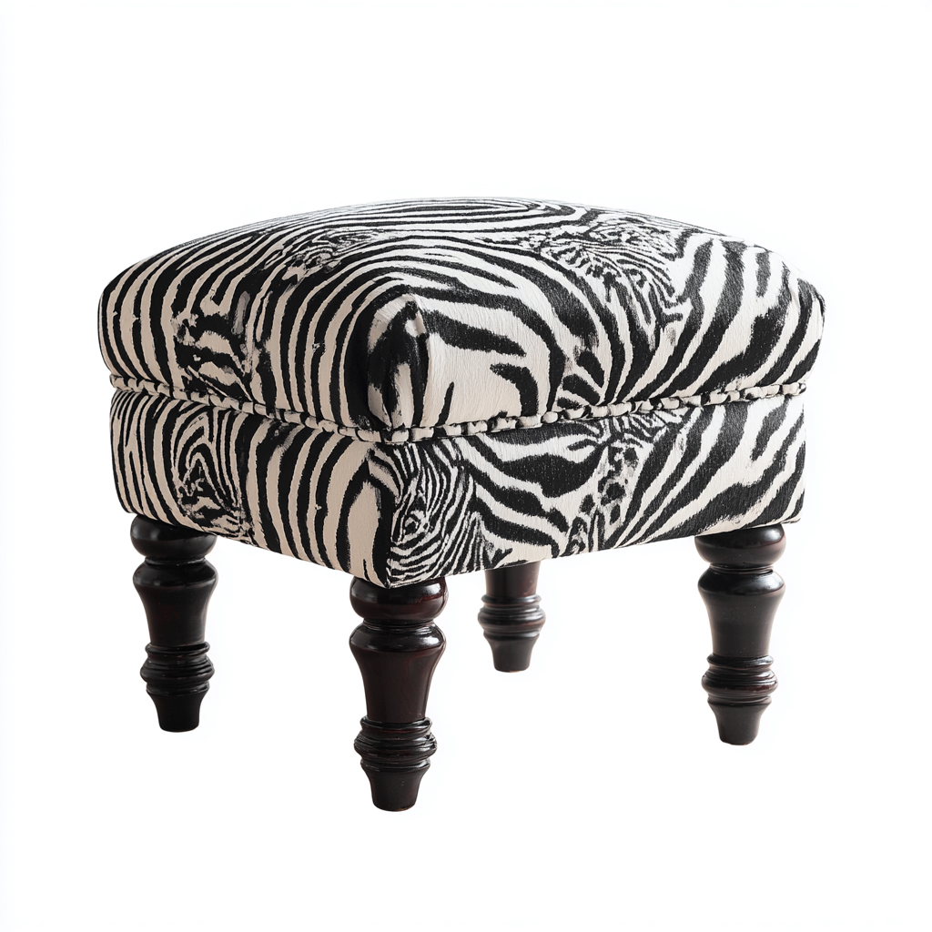 Pouf en tissu imprimé zèbre 50x40x45 cm - noir-blanc - style vintage pour salon