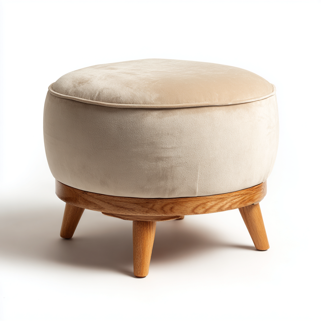 Pouf Velours-Bois 45x45x40 cm - Beige - Style moderne