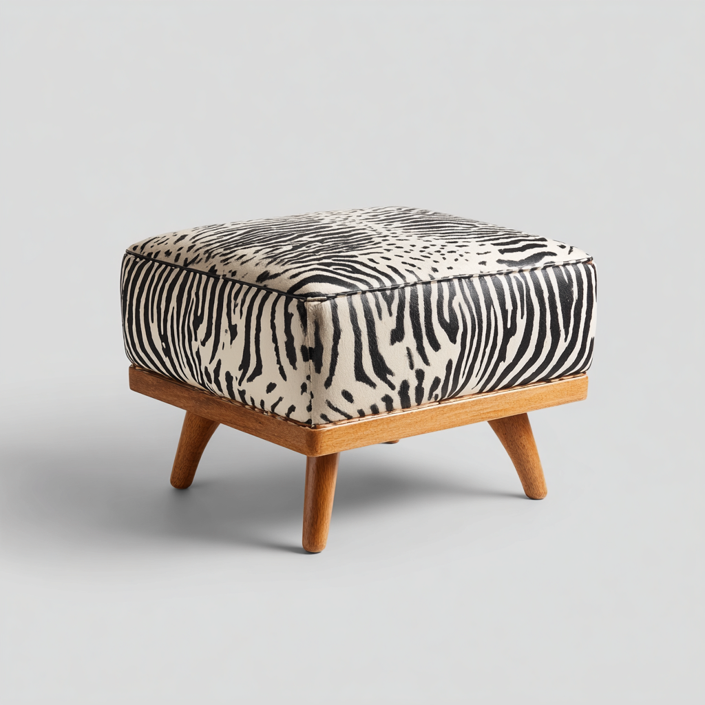Pouf imprimé zèbre tissu et bois 60x40x42 cm - noir-blanc - style contemporain