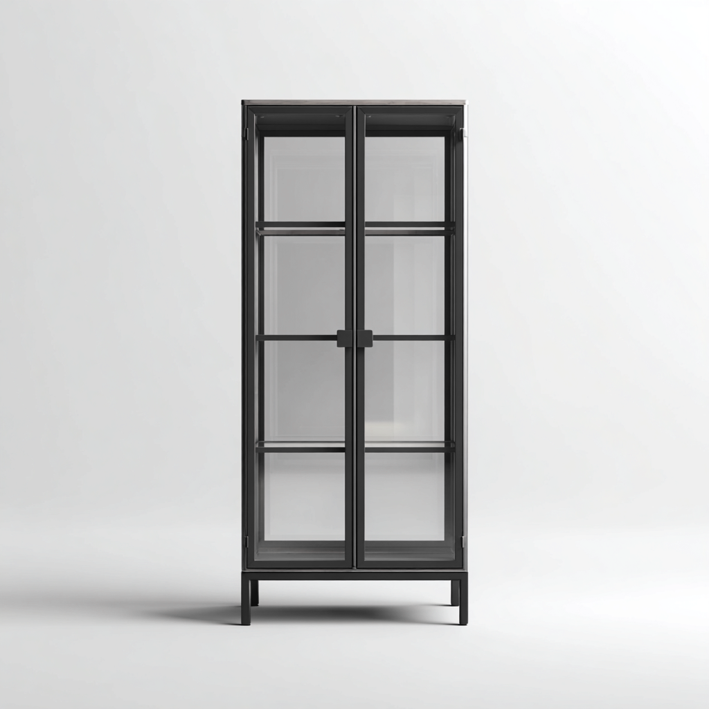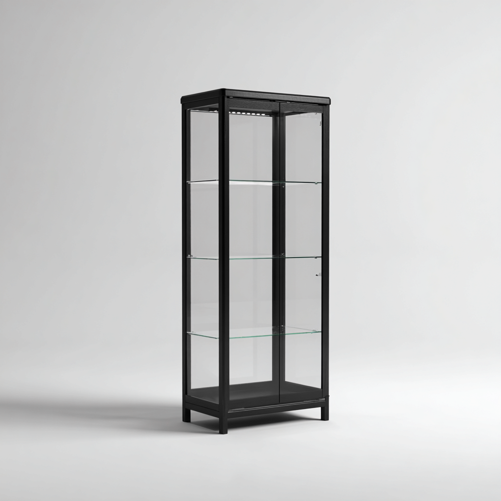 Vitrine Métal-Verre 90x40x180 cm - Noir - Design moderne