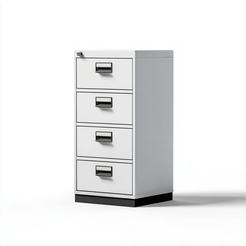 L'armoire comprend un ensemble de tiroirs adaptés au rangement de dossiers, fournitures ou outils bureautiques, permettant de garder l'espace de travail ordonné.