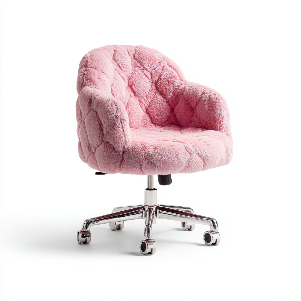 Cette chaise de bureau en tissu rose et base metal chromée propose une assise confortable adaptée à un espace de travail contemporain. Sa texture douce et son caractère visuel affirmé apportent une touche chaleureuse et originale.