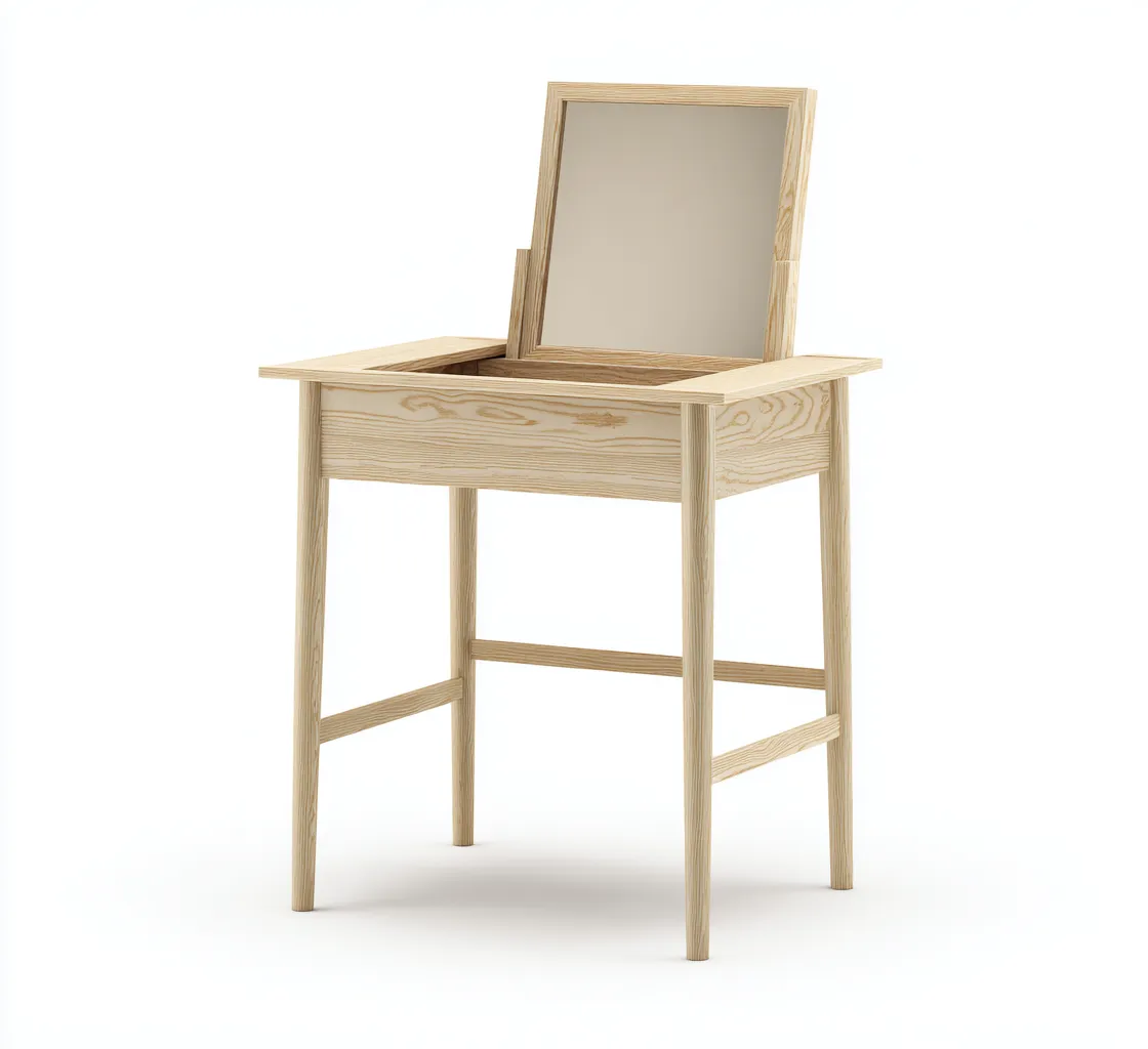 Cette coiffeuse en bois naturel est conçue pour offrir un espace pratique dédié à la préparation quotidienne dans la chambre ou l'entrée. Son miroir relevable permet une utilisation simple et fonctionnelle tout en apportant une touche élégante à l'ensemble.