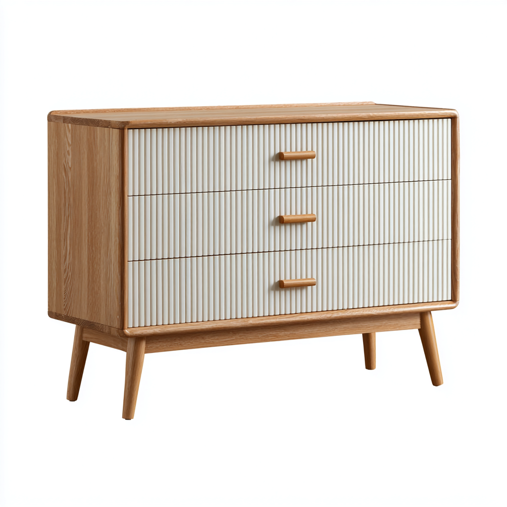 Cette commode au style scandinave offre une esthétique épurée, associant des lignes douces et une finition bicolore chaleureuse.
