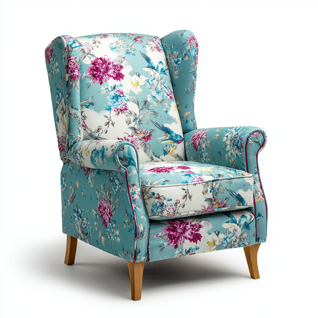Ce fauteuil relax en tissu imprimé floral offre un charme classique et une assise enveloppante, idéal pour un salon chaleureux ou un coin lecture élégant.