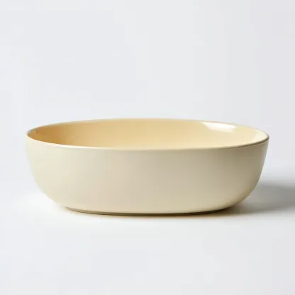 Il est fabriqué en céramique beige avec une finition lisse et brillante, apportant élégance et facilité d'entretien.