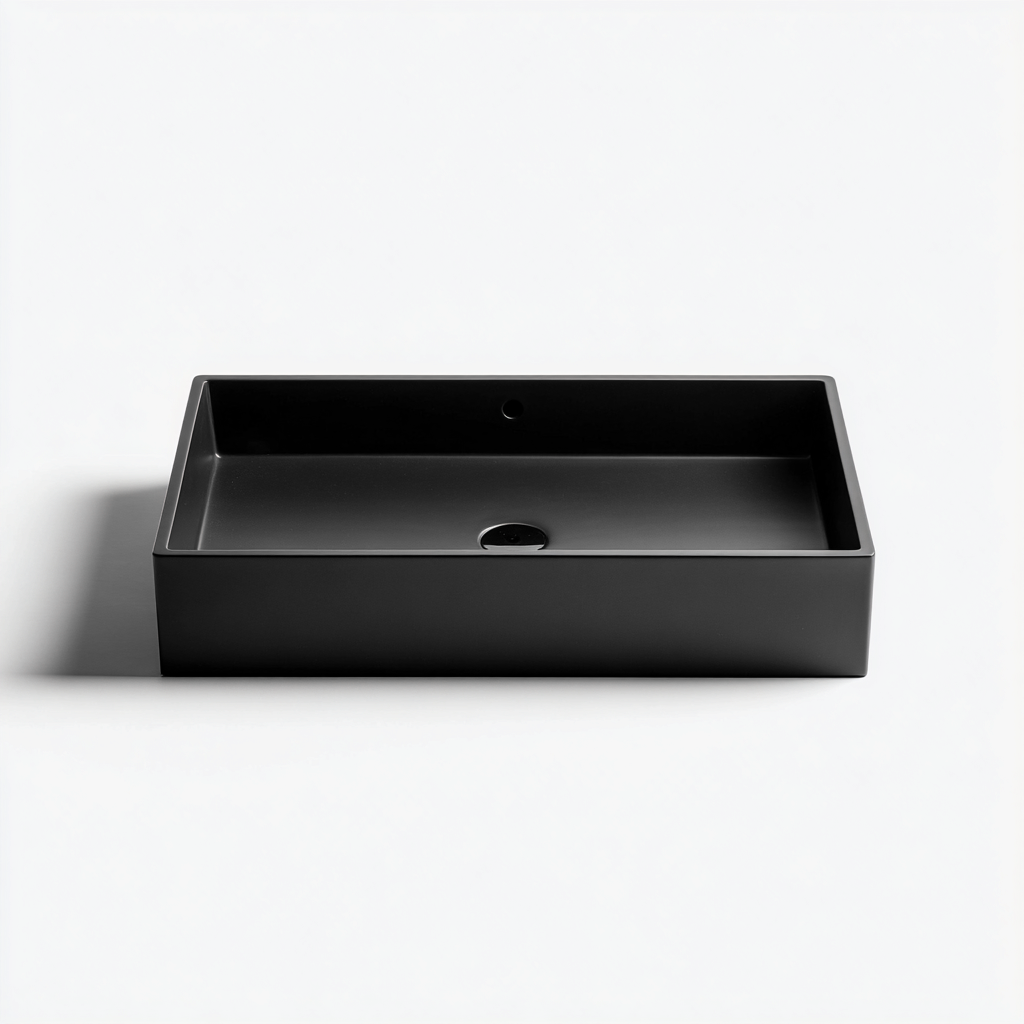 Le format rectangulaire optimise l'espace sur le plan de toilette tout en offrant un confort d'usage quotidien. Sa couleur noire donne un caractère moderne et distinctif.