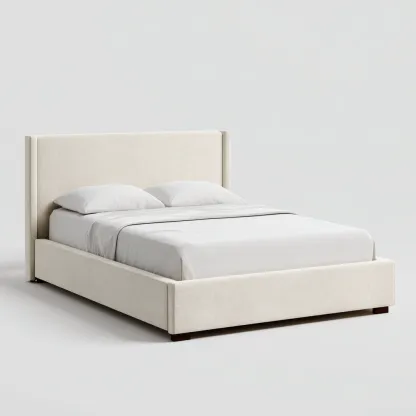 Ce lit double en tissu blanc se distingue par ses lignes épurées et son style moderne. La tête de lit droite et rembourrée apporte une touche élégante tout en créant une atmosphère lumineuse et apaisante dans la chambre.